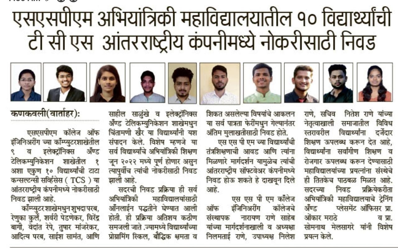 SSPMCOE has been known for its academic credentials coupled with holistic growth in all directions and spheres. The first decade of 21st century has been really great for SSPMCOE. The institute could achieve a series of milestones. Credit for the same undoubtedly goes to our brilliant students and supportive management.