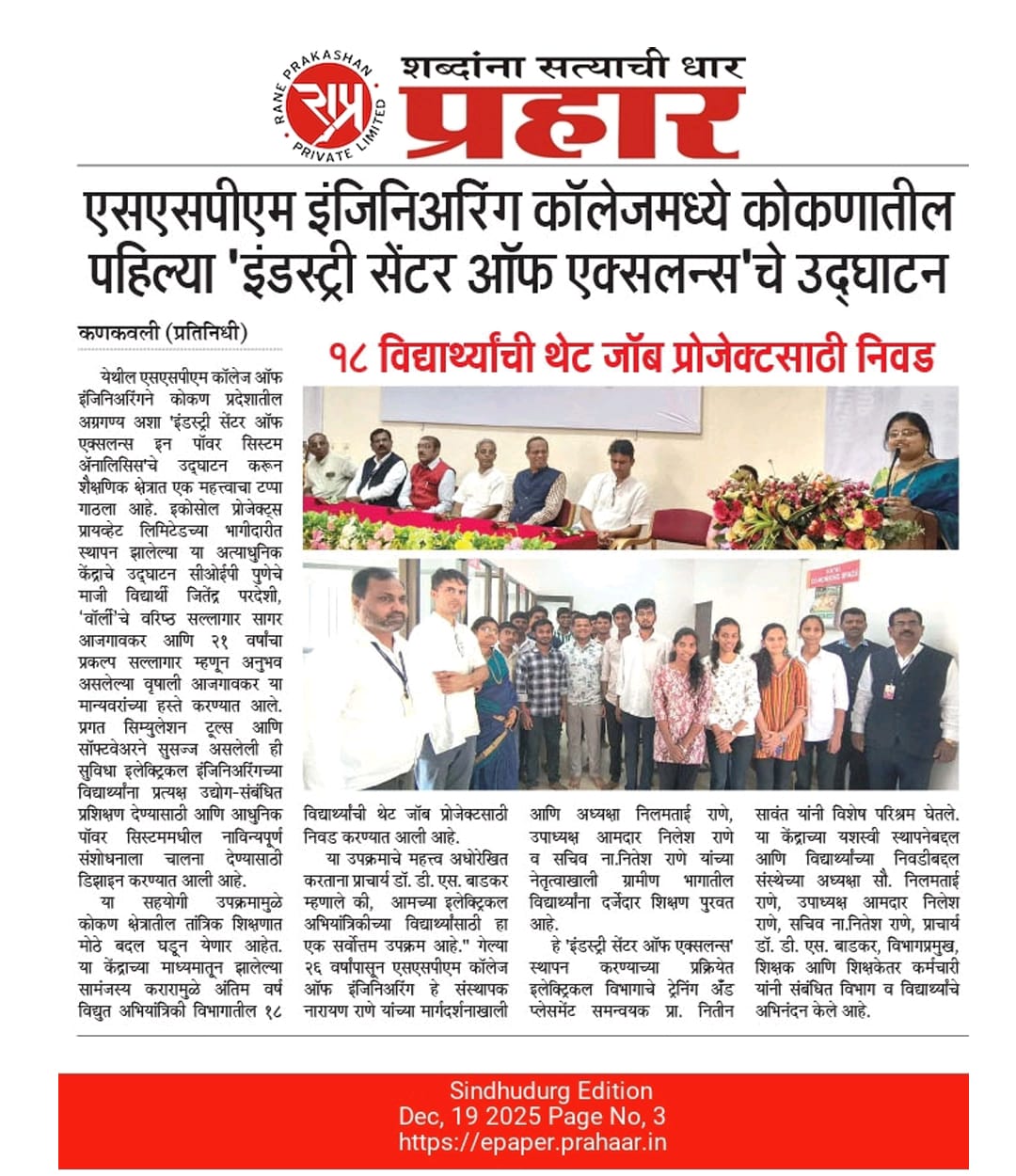 SSPMCOE has been known for its academic credentials coupled with holistic growth in all directions and spheres. The first decade of 21st century has been really great for SSPMCOE. The institute could achieve a series of milestones. Credit for the same undoubtedly goes to our brilliant students and supportive management.